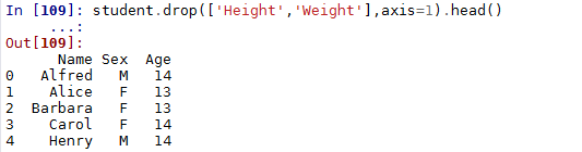 1 | In [61]: student.ix[:,['Name','Height','Weight']].head() |