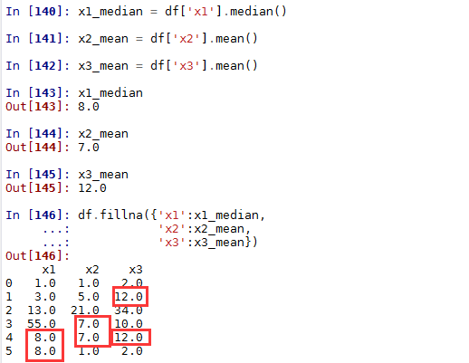 4)用均值或中位数填充各自的列