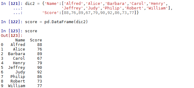 1 | In [23]: df2 = pd.DataFrame(dic2) |