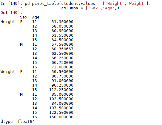 我们仍然以student表为例,来认识一下数据透视表pivot_table函数的用法: